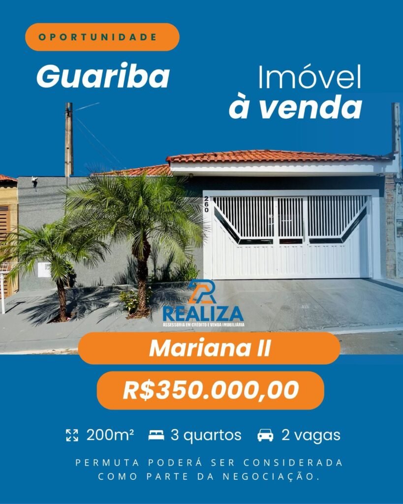 Casa com 3 dormitórios, um com suíte, 200 m², 2 vagas de garagem -Vila mariana 2 – Guariba/SP